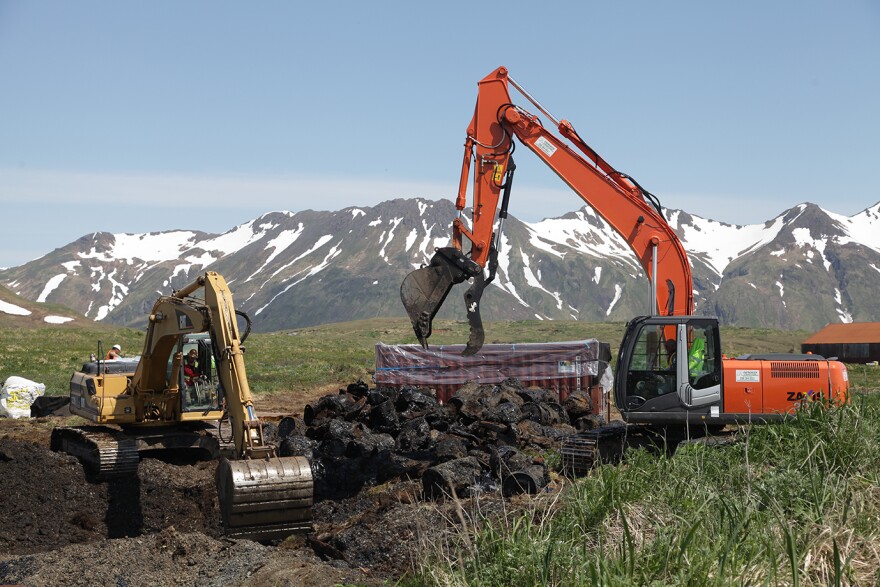 Project Manager Andy Sorum said the environmental risks on Attu have been on the Corps’ radar for nearly a decade. “In the case of Attu, we had 52 above-ground storage tanks that were about 4,000 gallons each,” Sorum said. “And they had deposited about an acre and a half of surface tar that was still really sticky and had entrapped birds. It was an acute hazard.”